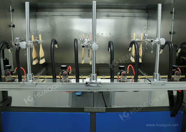 上料-(預(yù)留素材預(yù)熱)-毛刷靜電除塵-自動(dòng)噴涂1-預(yù)熱-自動(dòng)噴涂2-預(yù)熱-自動(dòng)噴涂3-預(yù)熱-自動(dòng)噴涂4-流平-烘烤固化-冷卻-下料